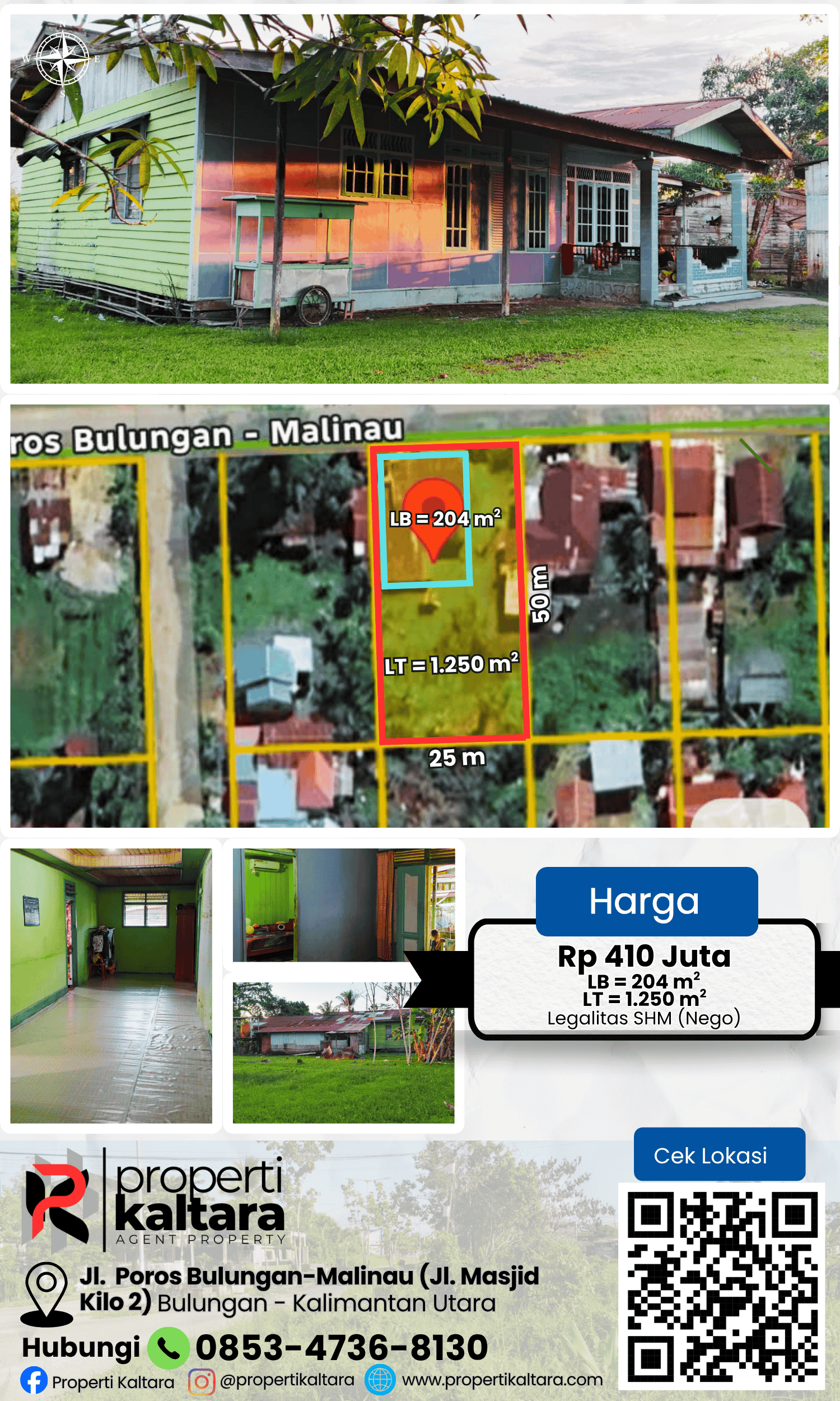 DIJUAL RUMAH DAN TANAH Jl. POROS BULUNGAN-MALINAU (JL. MASJID KILO 2) – BULUNGAN – KALTARA