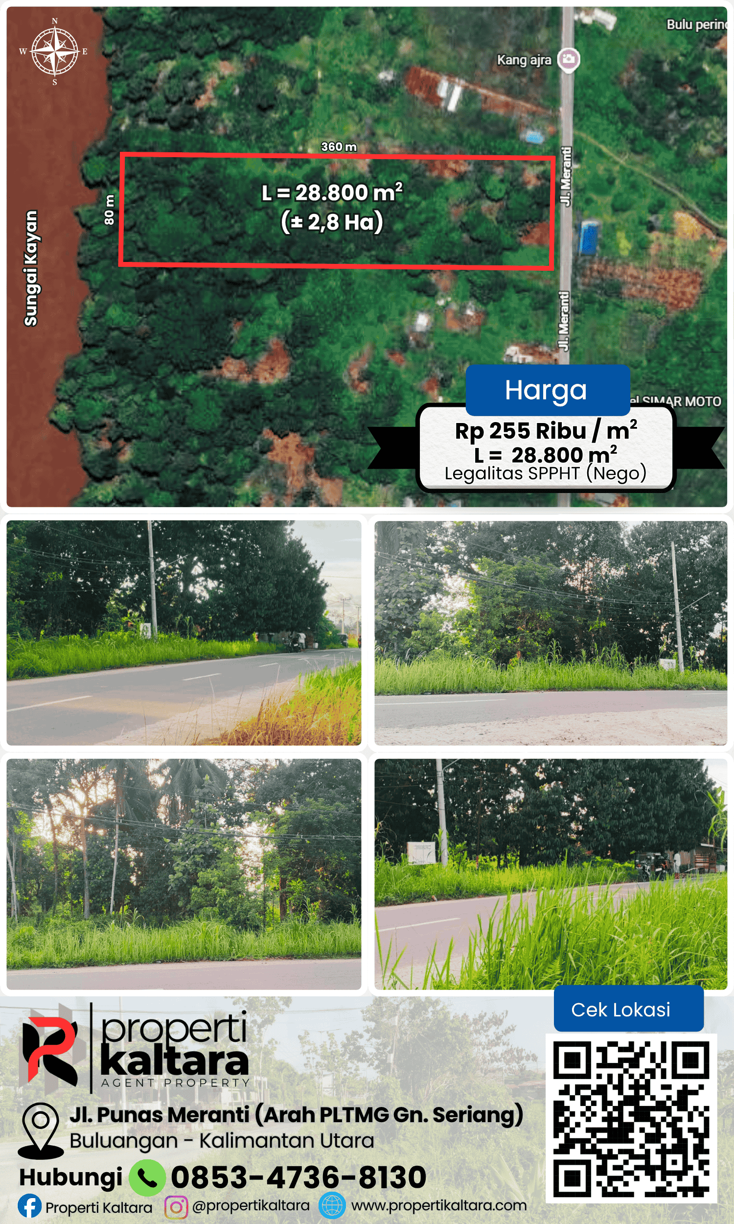 DIJUAL TANAH (± 2,8 HA) Jl. PUNAS MERANTI (ARAH PLTMG GN. SERIANG) – BULUNGAN – KALTARA