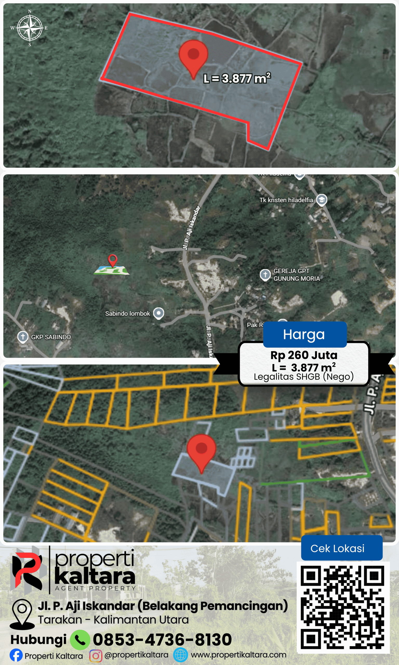 DIJUAL TANAH Jl. P. AJI ISKANDAR (BELAKANG PEMANCINGAN) – TARAKAN – KALTARA