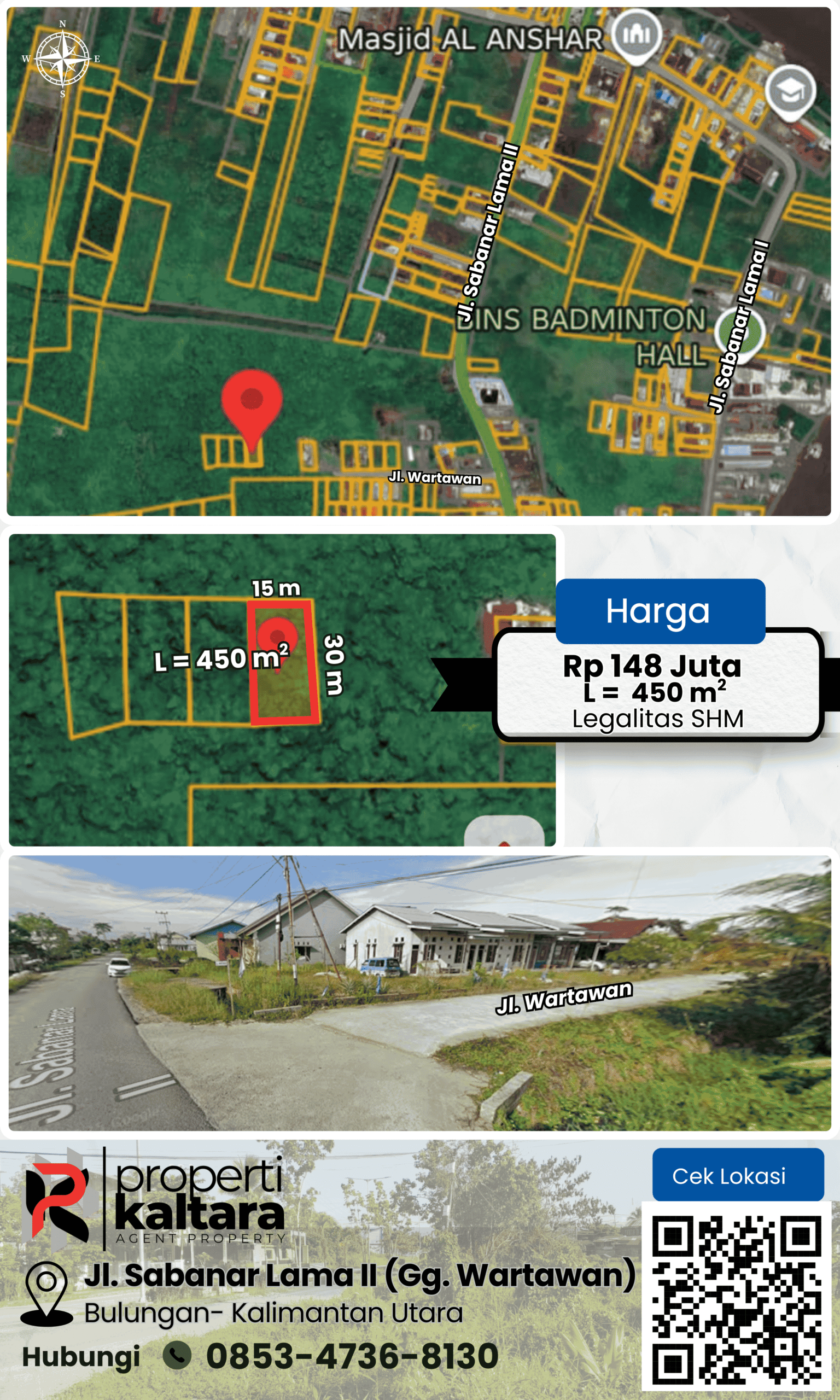 DIJUAL TANAH Jl. SABANAR LAMA II (GG. WATAWAN) BULUNGAN – KALTARA